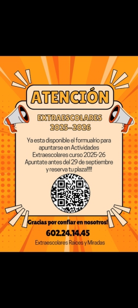 La Asociación cultural Raíces y Miradas nos ofrece las siguientes extraescolares para el curso 2025-26.