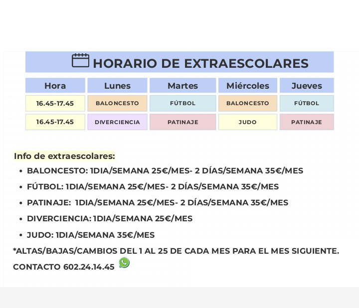 Las actividades extraescolares son sin ánimo de lucro y con ánimo de ofrecer espacios de juego y promover la participación en actividades físicas.